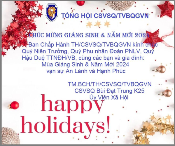 Ủy viên Xã Hội chúc Giáng Sinh & năm mới Post navigationPrevious: Thiệp mời tham dự ĐH ĐKVBTC 2024Next: Các Liên Hội, HVB, các khóa, PNLV và TTNĐH